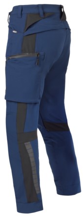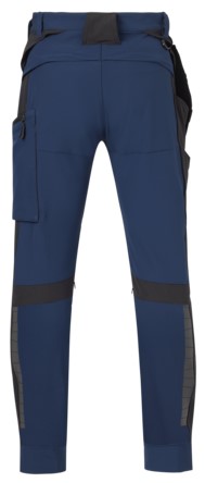 Work trousers made from hard-wearing material. Black designer reflections, 4-way stretch and pre-shaped legs.