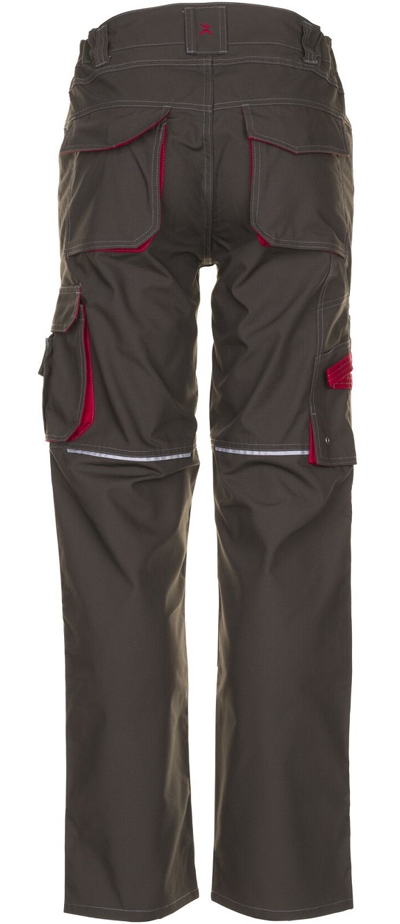 This article is certified as knee protection according to EN 14404 type 2, level 1 in combination with a knee PLANAMpad (art. no. 9901027). 2 patch side pockets with zip, 2 patch knee pockets can be operated from above, double ruler pocket on the right, thigh pocket on the left with flap and press stud, mobile phone pocket on the left, elasticated waistband, 2 hip pockets with flap and Velcro, zip in trouser fly, waistband with 7 belt loops and jeans button, reflective piping as safety equipment.