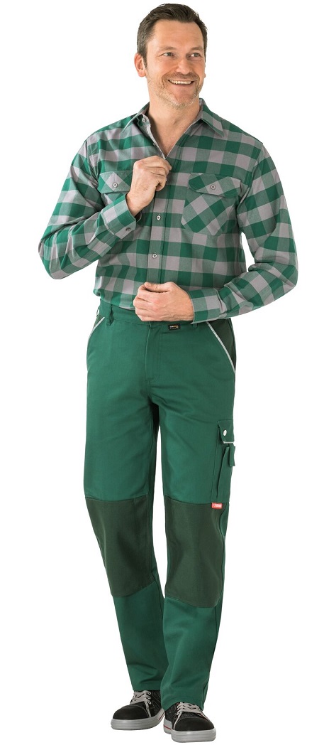 This article, in conjunction with a knee PLANAMpad (Art. No. 9901027), is certified as knee protection according to EN 14404 Type 2, Level 1. Knee pockets made of Cordura®, 2 set-in pouch pockets made of Cordura®, double ruler pocket made of Cordura® on the right, reflective piping on the pocket openings and pocket flaps, thigh pocket on the left with flap and press studs, mobile phone pocket on top, elasticated waistband, 1 reinforced back pocket on the right, round waistband with 7 belt loops and jeans button, zip in trouser fly.