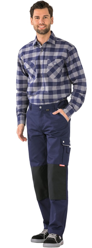 This article, in conjunction with a knee PLANAMpad (Art. No. 9901027), is certified as knee protection according to EN 14404 Type 2, Level 1. Knee pockets made of Cordura®, 2 set-in pouch pockets made of Cordura®, double ruler pocket made of Cordura® on the right, reflective piping on the pocket openings and pocket flaps, thigh pocket on the left with flap and press studs, mobile phone pocket on top, elasticated waistband, 1 reinforced back pocket on the right, round waistband with 7 belt loops and jeans button, zip in trouser fly.