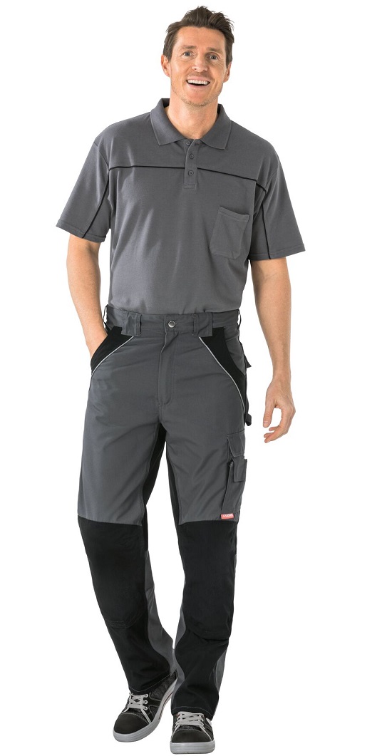 This article, in conjunction with a knee PLANAMpad (Art. No. 9901027), is certified as knee protection according to EN 14404 Type 2, Level 1. 2 set-in pouch pockets, 2 patch knee pockets, double ruler pocket on the right, thigh pocket on the left with flap and Velcro fastener, mobile phone pocket on the left, elastic waistband, 2 hip pockets with flaps and Velcro fastener, zip in trouser fly, reflective piping as safety equipment.