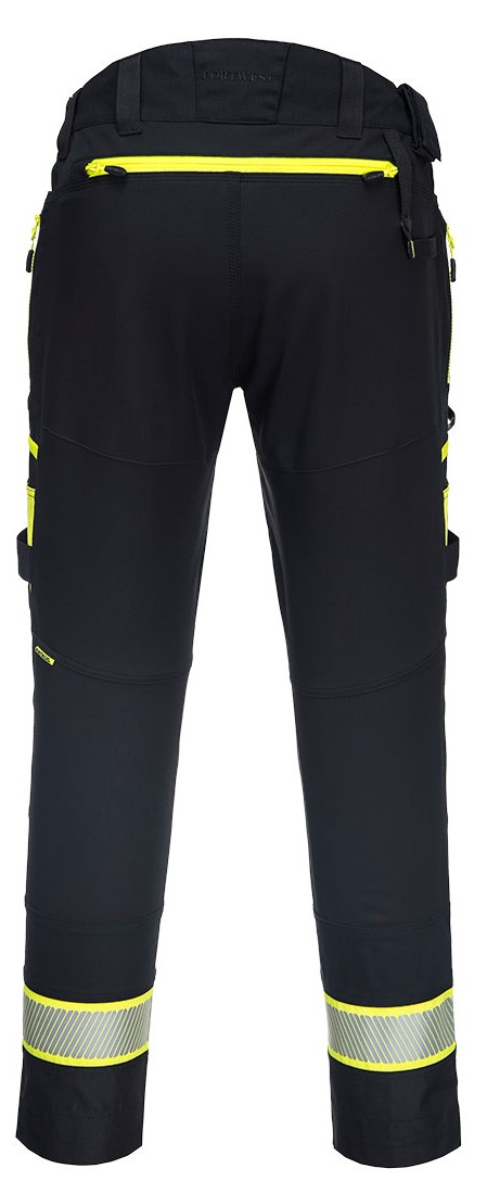 The DX4 work trousers are ergonomically shaped and use the targeted placement of 4X stretch fabrics to ensure maximum freedom of movement when working. The trousers have a high back waistband with elasticated sides for protection in all working positions. Adjustable knee pockets with pre-curved knees, generous front pockets and multi-functional zippered thigh pockets provide secure storage for phone, pens and tools. Triple stitching for maximum durability.