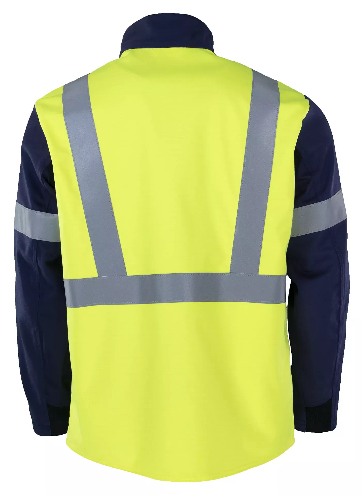 Reflective stripes 5 cm wide over the shoulder up to the front flaps and in the back up to the all-round reflective stripes