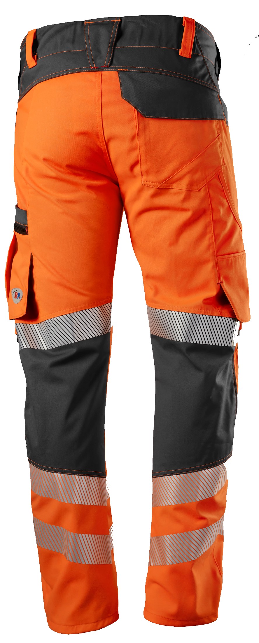 free hanging ruler pocket with pen pockets, ergonomic cut, 2 circumferential reflective stripes on each lower leg, 1 circumferential reflective stripe on each upper leg