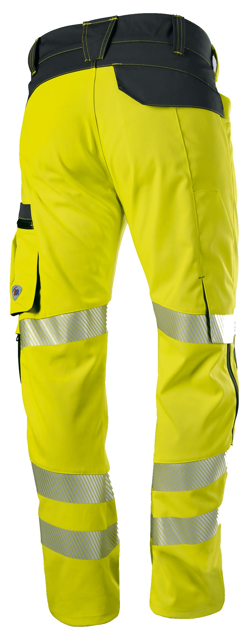 2 circumferential reflective stripes on the lower leg, 1 circumferential reflective stripe on the upper leg, closable knee pad pockets with ventilation opening