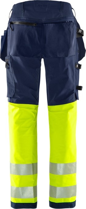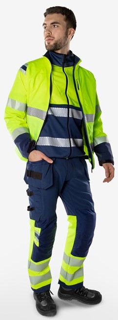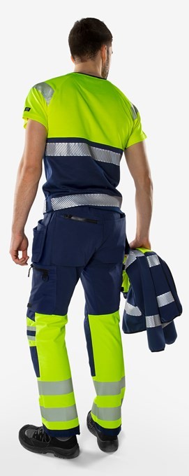Sustainable high-vis artisan stretch pants made from 4-way stretch bio-based and recycled materials and equipped with stretch inserts at the waistband for superior comfort. Reinforced in exposed areas for added durability. With EPD (Environmental Product Declaration).
