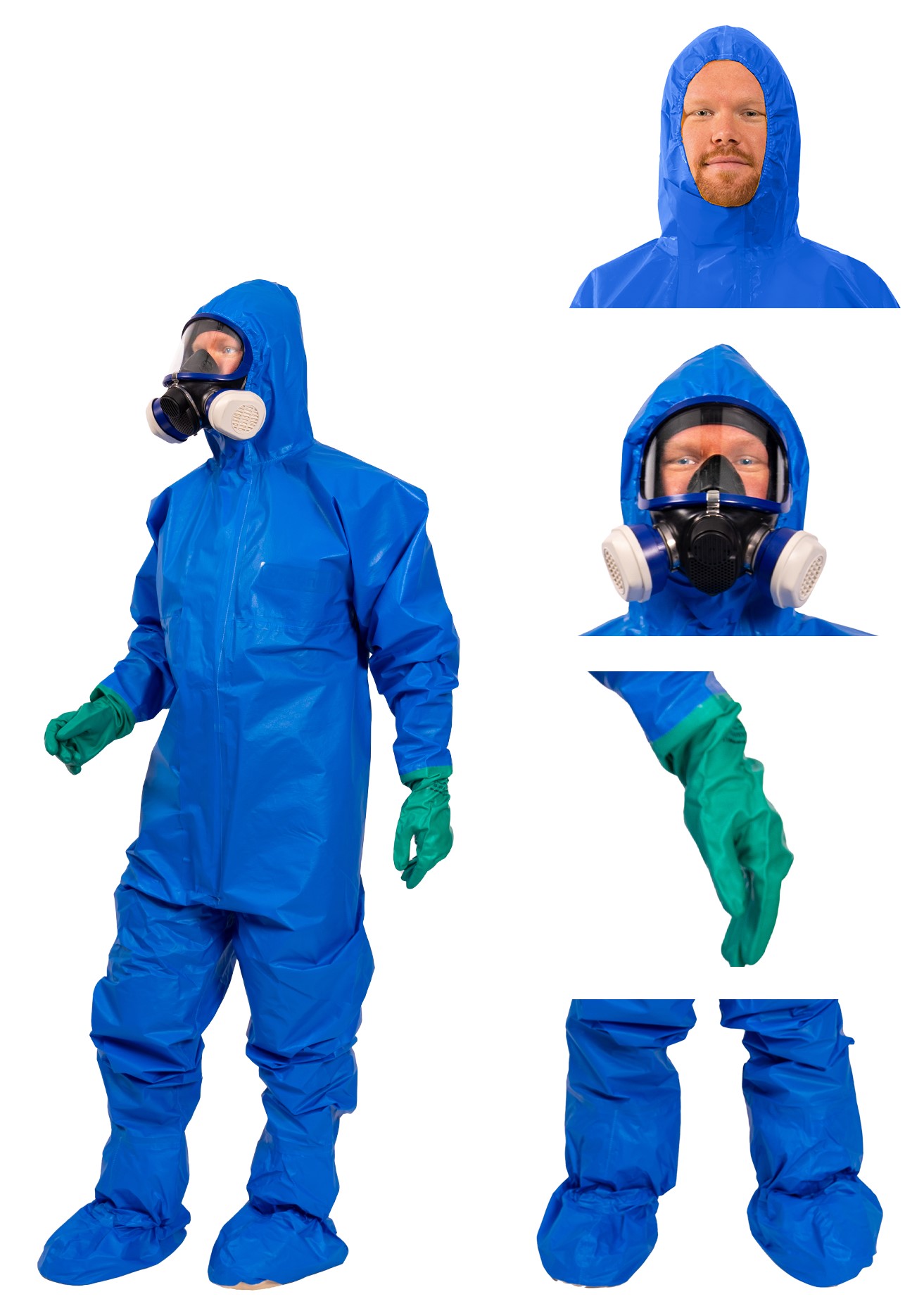 The suit is made from our CPM, which is a high performance material designed to protect against a wide range of chemical and biological hazards. The outer layer of the material consists of a barrier layer that prevents the passage of chemical and biological substances. The inner layer is a soft, comfortable layer that is resistant to moisture and perspiration and increases wearer comfort.