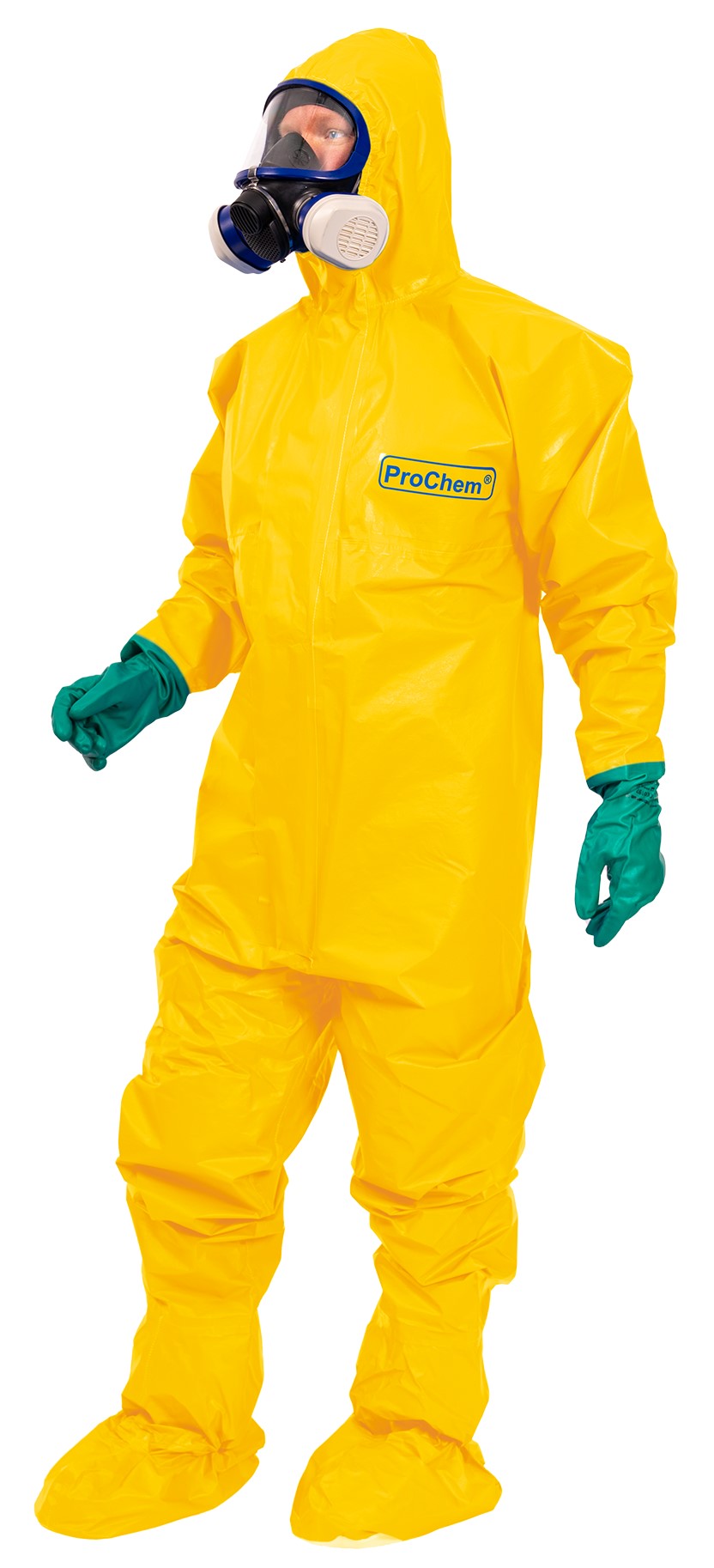 The ProChem® I is primarily used in industrial and tank cleaning, for inspection work and by fire and rescue services. Elasticated sleeves, legs and hood as well as an elasticated waist ensure an optimum fit and the generously cut crotch area provides optimum freedom of movement. The ergonomic hood and the raised double cover flap with Velcro fastening over the zipper up to the chin offer additional protection. Elastic thumb loops prevent the sleeves from riding up when working overhead.