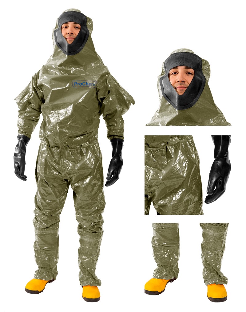 The ProChem® II is primarily used for tank and sewer cleaning, handling solid and liquid hazardous substances or for decontamination work and hazardous goods operations. Elasticated sleeves and legs and an elasticated waist ensure an optimum fit and the generously cut crotch area provides optimum freedom of movement. The horizontal entry at the back with protected wrap-around panel and Velcro fastener provides a tight seal. A butyl face seal provides an optimum seal on the outside of full face masks.