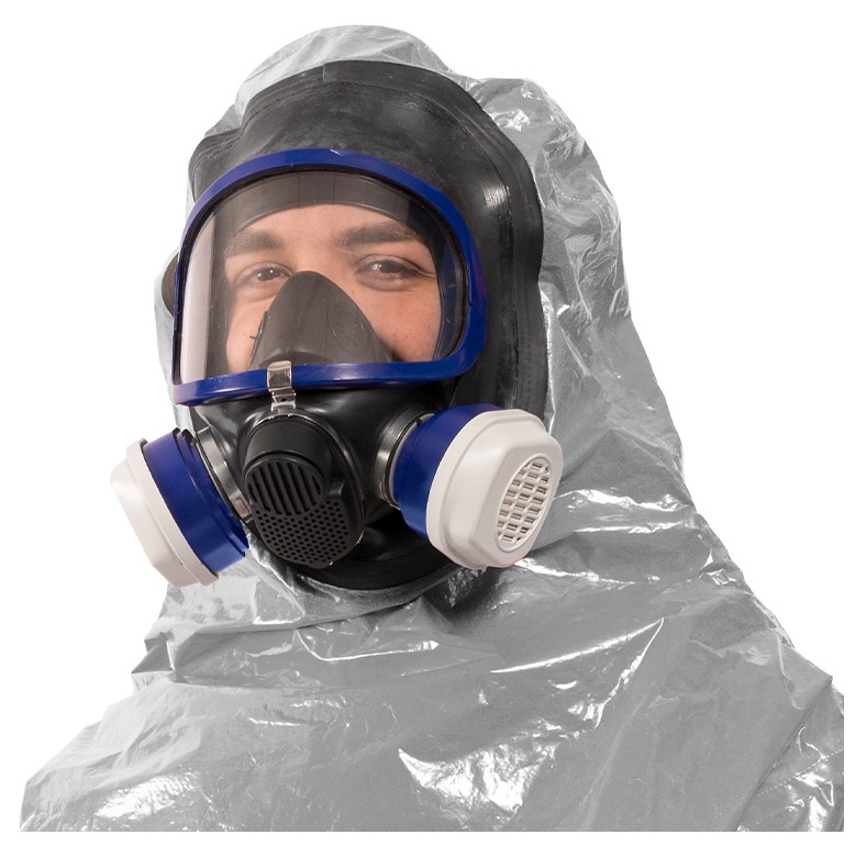 The suit is made from Tychem F, a lightweight, resistant material that provides a high barrier against the permeation of a wide range of chemicals and protects the wearer from numerous organic and highly concentrated inorganic chemicals. It is also antistatic.