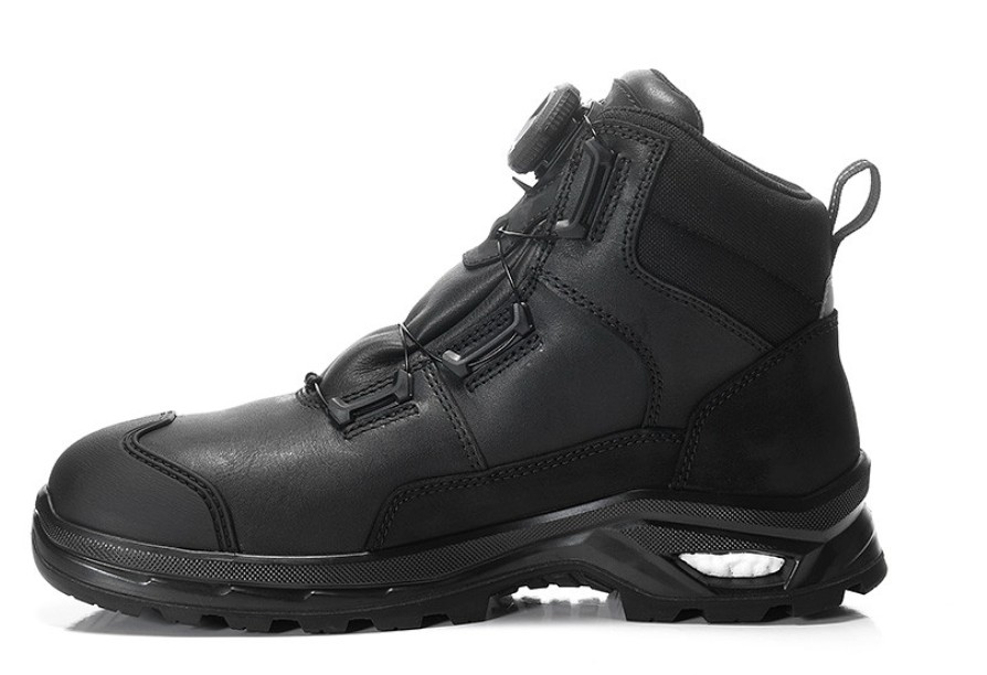 Every step on a construction site can be dangerous if you don't have the right shoes on. Uneven floors, sharp edges, heavy loads - there are so many challenges for our feet. We need a safety shoe that supports us, that we can trust and that simply gives us the feeling that nothing can happen to me here so quickly. The KABRU XXP Pro BOA GTX black Mid ESD S3S WR HI CI is just such a shoe. Made from hydrophobized cowhide and nubuck leather. A robust all-rounder from our WELLMAXX-PEAK series. This series combines the robustness of hiking boots with the comfort and cushioning of WELLMAXX shoes. Thanks to the GORE-TEX Performance Comfort Footwear on the inside, the foot stays dry, even in the rain or in damp working environments, as the KABRU XXP is waterproof. The BOA® Fit System replaces classic laces - one twist is all it takes for a perfect fit. No pressure, no retying, simply a firm hold that feels as if the shoe is part of the foot. On the inside: Ergonomics at the highest level. The