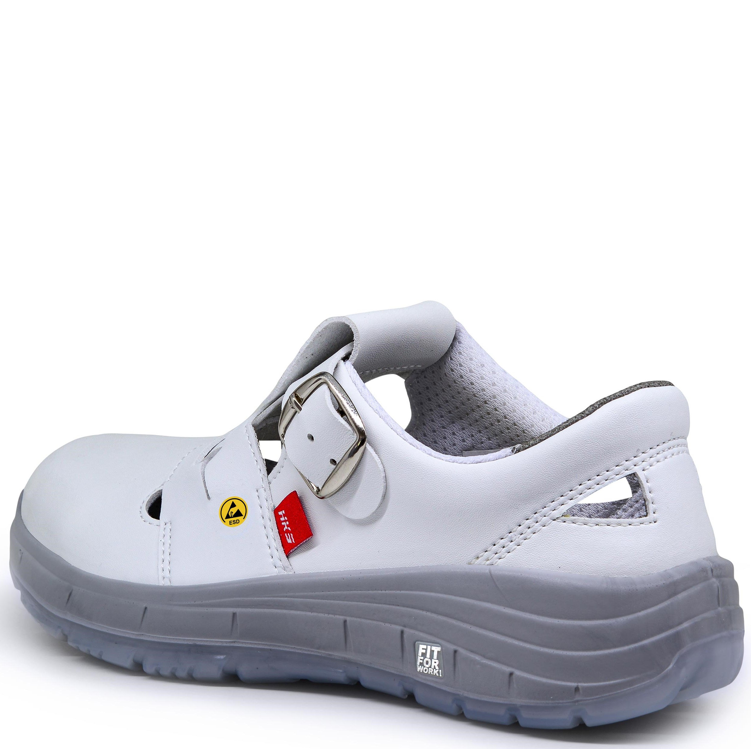 The safety sandal Lady 3 M, ESD, S1, SRC in white has a steel toe cap, a TPU/PU sole and impresses with its sporty look. It meets the performance requirements of safety class S1. HKS Running-Concept women's safety shoes reinforce the natural feeling of running and provide safety and optimum contact on virtually any surface.Highly abrasion-resistant TPU as a sole tread, ensures stability and traction even in long-term use. In addition, these safety shoes are characterized by optimal cushioning and also provide impact protection.  Further details: