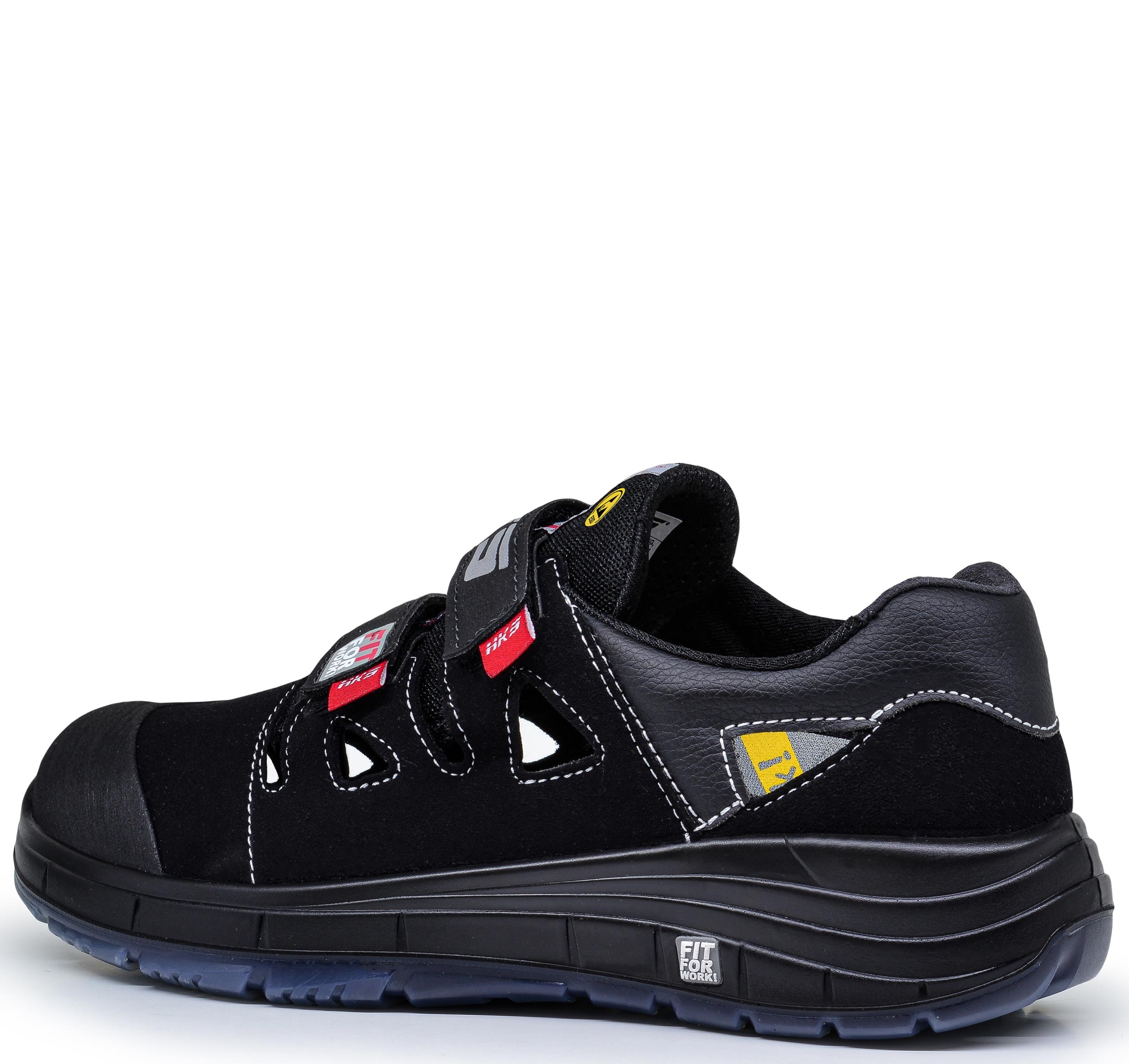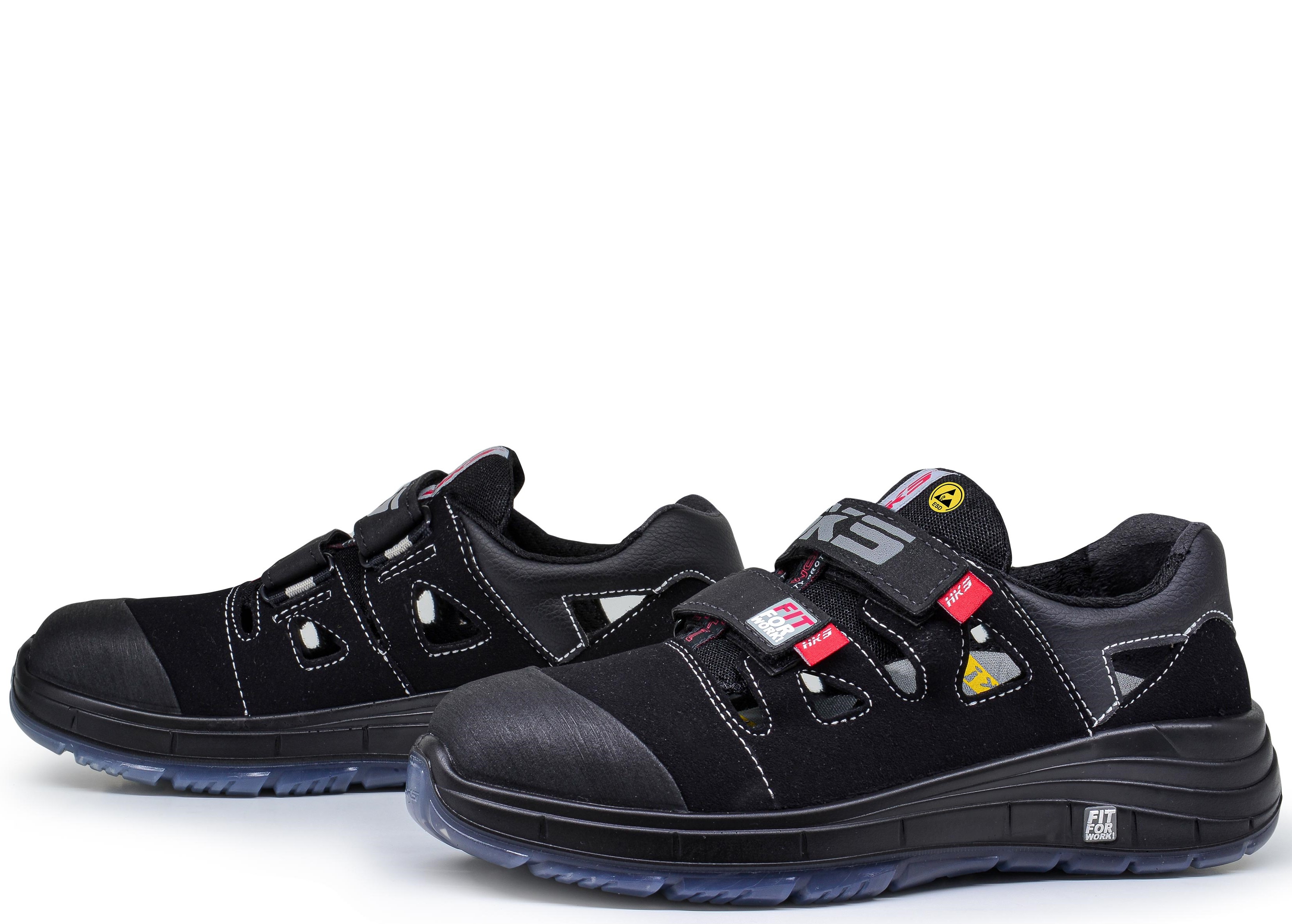 The safety shoe Solar 1 MTP, ESD, S1P, SRC in black has a steel toe cap, a TPU/PU sole and impresses with its sporty look. It meets the performance requirements of safety class S1.HKS Running-Concept safety shoes enhance the natural running feeling and provide safety and optimal contact on practically any surface. Highly abrasion-resistant TPU as sole tread, ensures stability and traction even in long-term use. In addition, these safety shoes are characterised by optimum cushioning and also offer impact protection.More details: lightweight HKS® -safety sandal, made of resistant, antibacterialrofamicro-ser Upper material; double velcro fastener new "Running Concept" series, Steel toe cap antimicrobial, odour-reducing SMARTEC-AIR functional lining; best ventilation with Distance mesh Fit for work "feel-good climate" footbed, with elastic "EnergyReturnSystem K-run TPU/PU outsole with power cushioning and very good grip, even in wet conditions! antistatic, oil and petrol resistant
