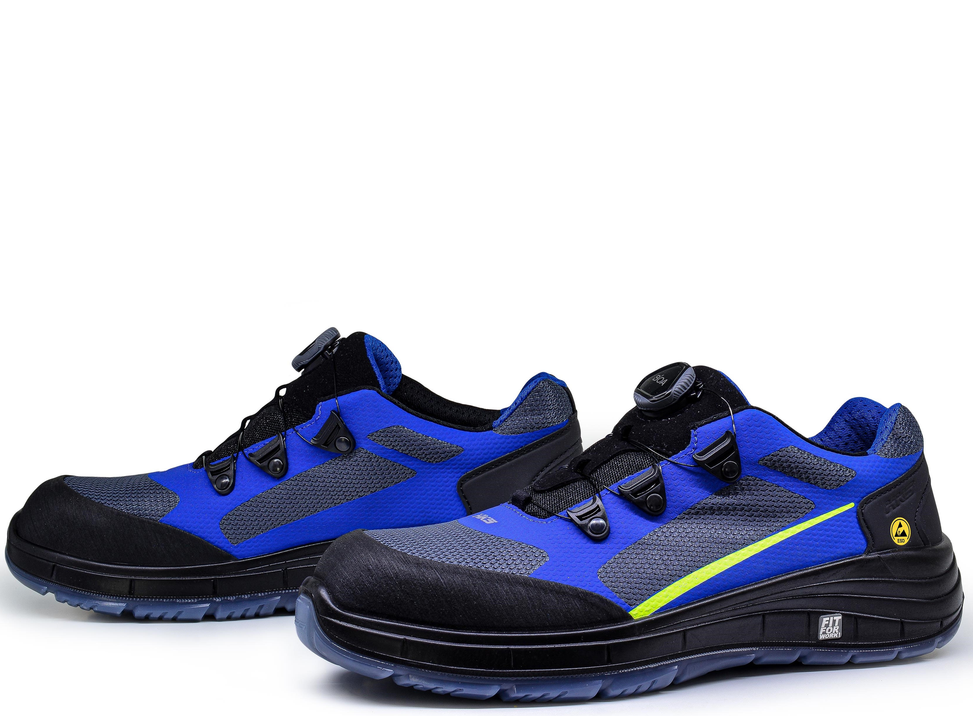 The safety shoe Boa 2 TP, S1P, SRC in blue has a steel toe cap, a TPU/PU sole and impresses with its sporty look. It meets the performance requirements of safety class S1.The HKS safety shoes from the Running-Concept series are ultra-light safety shoes that hardly differ from normal running shoes and are characterized by a special adaptability, elasticity and flexibility.With the Boa closure solution is permanently and easily an ingenious Anpssung to each foot possible. The closure can be easily closed and opened with one hand. Further details: