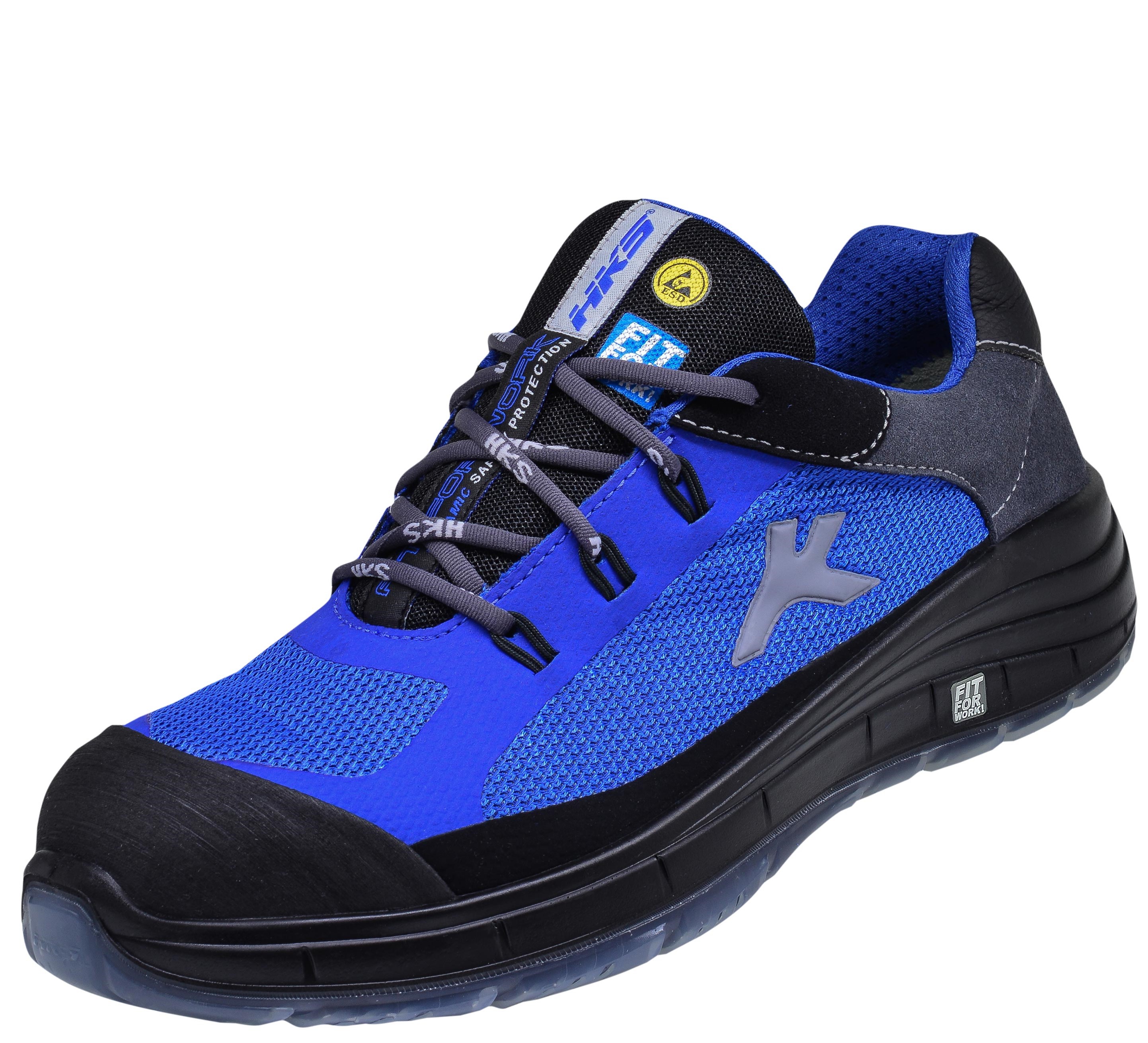The safety shoe Free 2, ESD S1, SRC in blue has a steel toe cap and a TPU/PU sole and meets the performance requirements of safety class S1.HKS Running-Concept safety shoes reinforce the natural running feeling and provide safety and optimal contact on virtually any surface. Highly abrasion-resistant TPUas a sole tread, ensures stability and traction even in long-term use.In addition, these safety shoes feature optimal cushioning and provide additional impact protection. Further details: