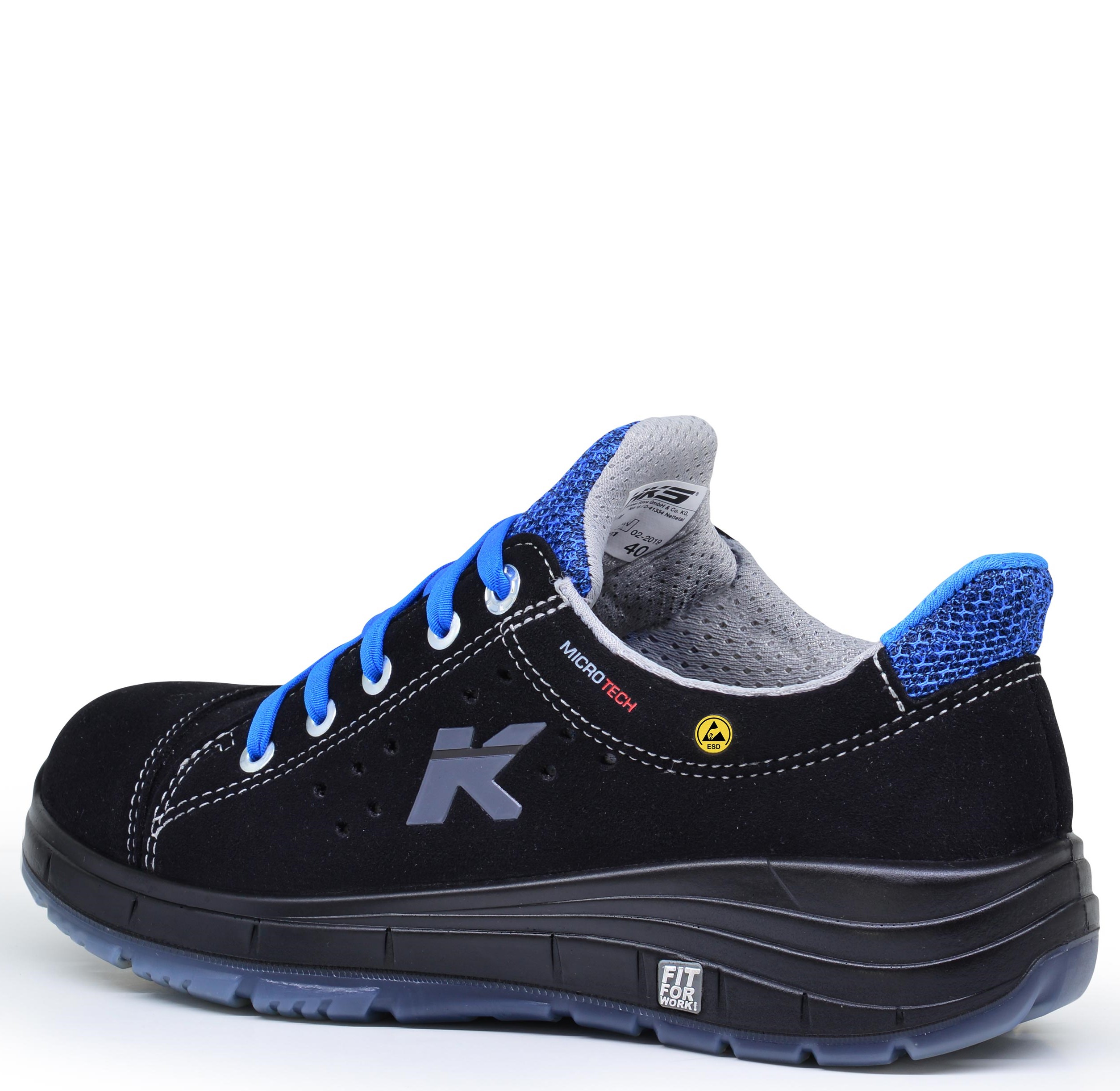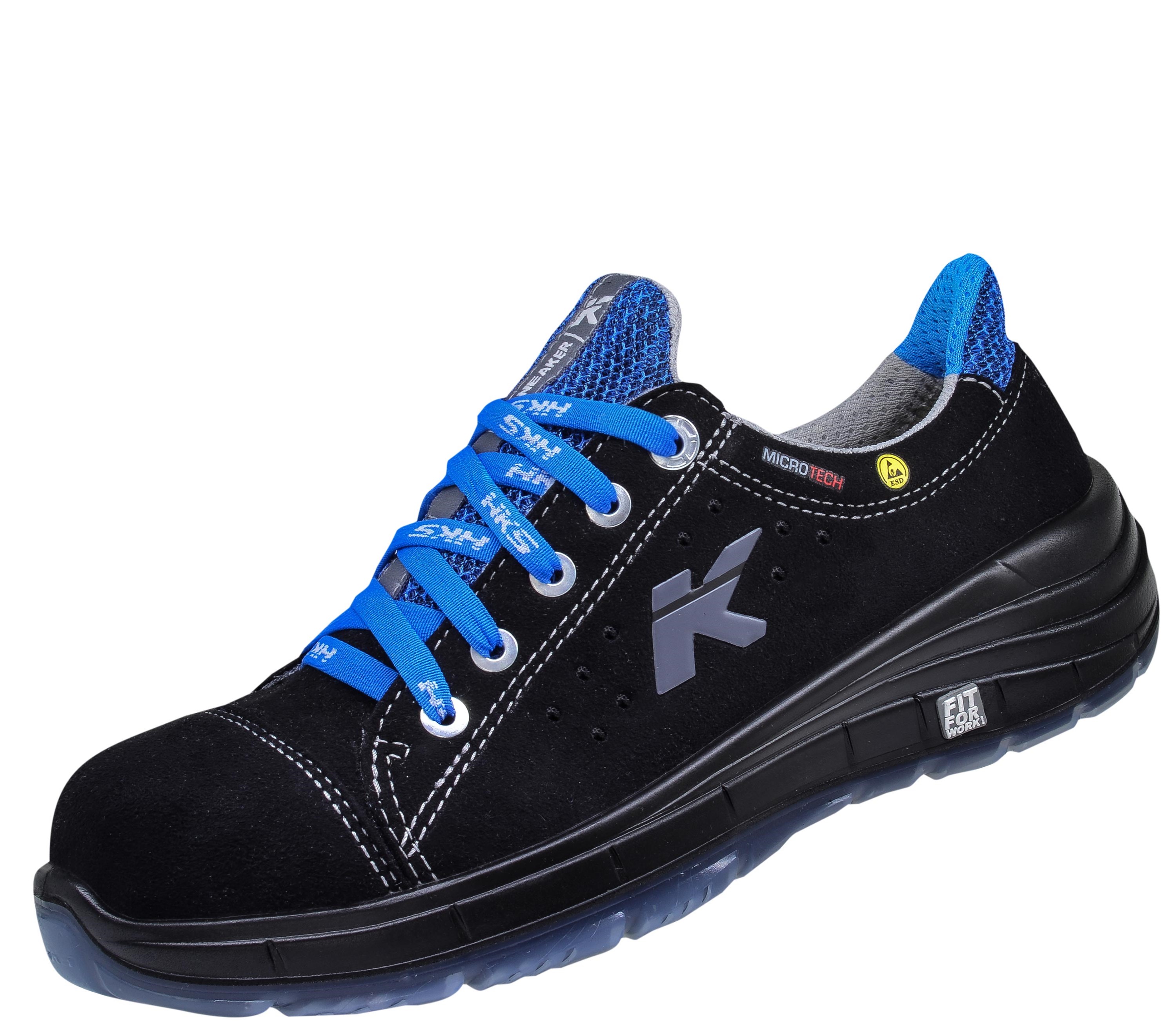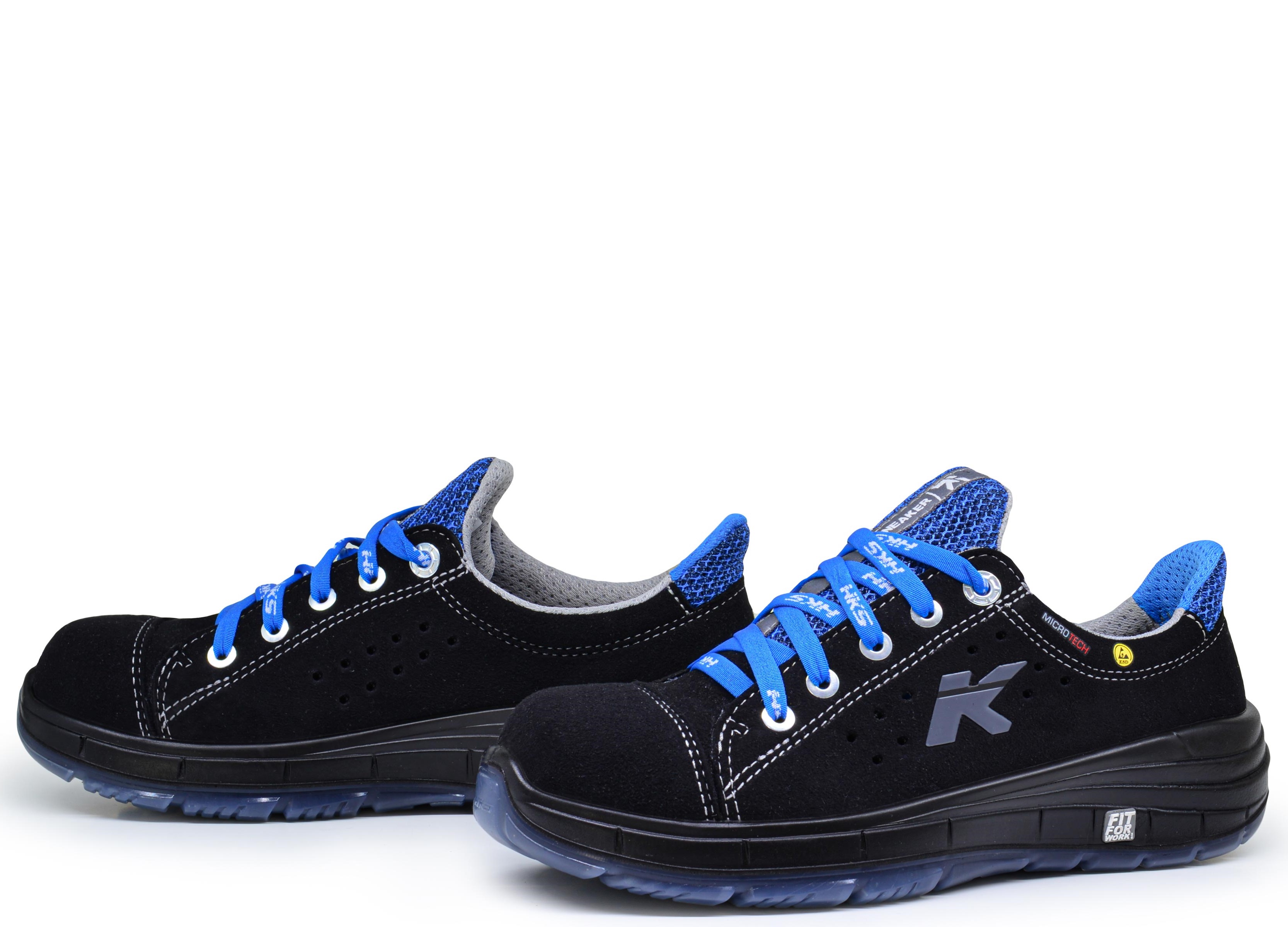 New: Revised stock design	Upper material: Mikrofaser/perforated	Steel toe cap	Cold insulating K-RUN TPU/PU outsole, Powergrip on any surface, even wet!	DIN EN 20345 S1 SRC	Sizes: 36-42	Shoe shape: Ladies safety low shoe	Closure system: lace closure	Upper: Smooth Mikrofaser upper, perforated, breathable, skinfreundlight, abrasion resistant, hygienic, New: Innovative dressing aid, for quick dressing and undressing	Fit: Width 11 (Normal)	Lining: Textile | Distance-Net, grey/blue	Footbed: Standard built-in FIT FOR WORK footbed	DGUV 112-191 The standard built-in comfort footbed is exchangeablehband the DGUV 112-191 can be adapted as an option	Midsole: PU (AIR-CELL cushioning system for optimum reduction of impact and compression forces)	Sole: TPU (non-slip material components for good ground contact even on damp soils)	Toe cap: steel	Foot protection: antistatic (A), toe cap, slip-resistant (SRC = SRA + SRB), breathable, ESD features, shock-absorbing (E), fuel-resistant (ORO), antibacterial