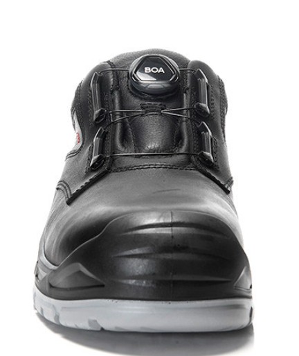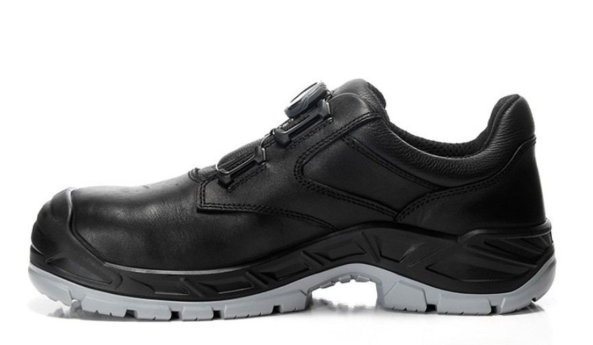 Anyone stepping onto a construction site early in the morning and moving across rough terrain usually encounters uneven or slippery surfaces, obstacles, cables, holes in the ground or materials lying around, so it's no surprise that slipping and tripping can happen almost daily. With the jo_ADVANCED Compo BOA black Low ESD S3S on your feet, nothing can really go wrong, as the hard-wearing cowhide upper and sturdy PU/PU sole construction give this shoe the necessary toughness for even the most demanding areas of use. This safety shoe is equipped with a plastic toe cap, which prevents you from injuring your toes if you accidentally bump into a concrete pipe or a heavy brick falls on your foot. Thanks to the metal-free penetration protection with parts made from recycled materials, sharp objects on the ground cannot easily penetrate the sole. A polyurethane overcap on the toe of the shoe prevents abrasion of the upper material. The shoe also features Laddergrip (LG), which makes working o