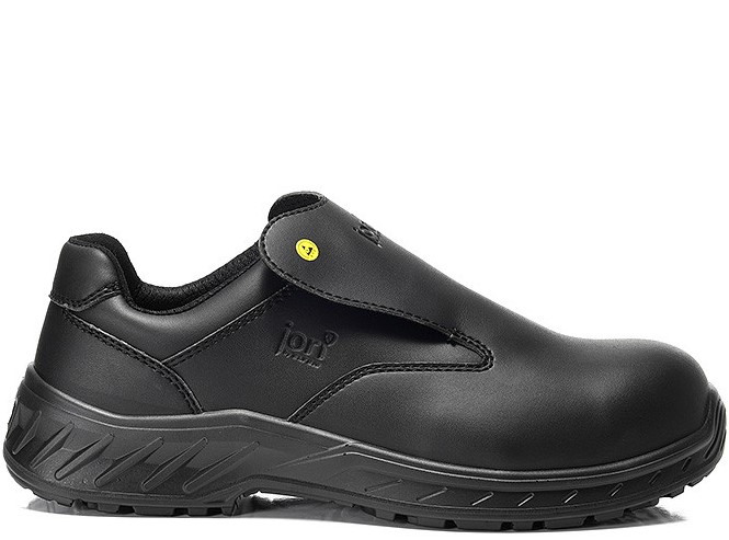 The jo_CLEAN Slipper black Low ESD S3 from Jori by ELTEN has everything an S3 safety shoe needs. Plastic toe cap and metal-free penetration protection reliably protect the feet, the SRC-certified jo_MONO outsole made of mono-PU also ensures a secure footing. At the same time, it is very light and provides excellent cushioning. The upper material made of hydrophobic microfibre and the breathable textile lining allow air to circulate in the shoe. The completely leather- and metal-free as well as ESD-capable low shoe is available in sizes 46 to 48.