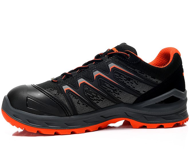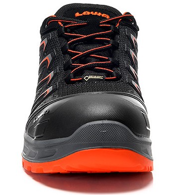 With the LARROX Work GTX black Lo S3 CI, you can be sure of an athlete's safety. The black upper made of hydrophobic textile material is complemented by the GUMMI/PU sole in chic orange. The sporty safety low shoe from our LOWA Work Collection comes with a steel toe cap and metal-free penetration protection. The GORE-TEX membrane also protects against water penetration. The feet stay dry and the shoe climate is permanently and comfortably regulated. Lowest temperatures on the way? No problem, because LARROX is cold-insulating, which means that feet do not cool down too much even in icy cold. Even working in a kneeling position is no problem. A TPU overcap protects against premature wear of the shoe tip and contributes to the durability of the S3 low shoe. The LARROX is available in sizes 39-48.