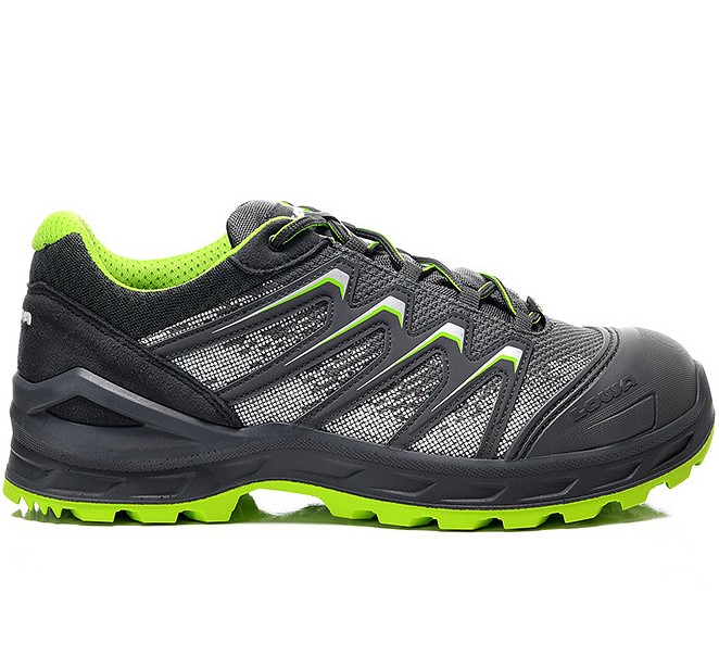 The LARROX Work GTX grey Lo S3 CI from our LOWA Work Collection is an absolute all-rounder. The chic look in plain grey is brought along by the hydrophobic textile material. The upper material is robust. To prevent premature wear, the S3 shoe has a TPU overcap. GORE-TEX waits inside, making the shoe waterproof and providing a pleasantly regulated shoe climate. The colourful touch is provided by the lime-green outsole made of GUMMI/PU, which offers secure grip thanks to SRC certification. Even in sub-zero temperatures, the safety shoe is a good choice because the cold insulation makes cold feet a thing of the past. A steel toe cap and the metal-free penetration protection protect against external dangers. Available in sizes 39-48.