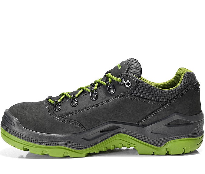 The RENEGADE Work GTX green Lo S3 brings colour into play and causes a stir. With the safety shoe from the LOWA Work Collection, the wearer is always well positioned. Steel toe cap and steel midsole of the safety shoe protect the foot from dangers from above and below. The GUMMI/PU outsole from VIBRAM® is also particularly slip-resistant and ideally suited for demanding surfaces. The robust upper material made of hydrophobic nubuck leather and textile material is resistant and water-repellent. The inner lining made of GORE-TEX membrane always ensures a pleasant foot climate and makes the RENEGADE Work GTX green Lo S3 with frog green highlights ideally suited for all outdoor activities. Available in sizes 39 to 47.