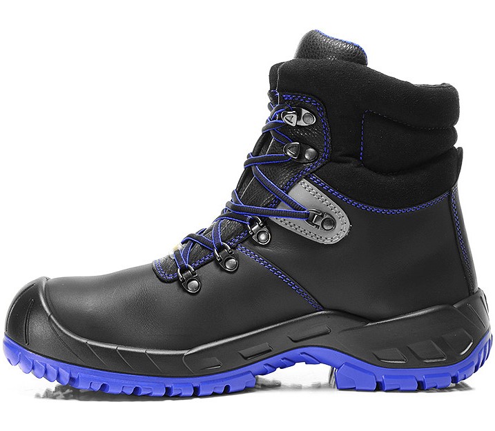 Special grip on unsafe surfaces thanks to the SAFETY-GRIP outsole. The unique feature: the coarse outsole is strikingly blue. The ALESSO blue Mid ESD S3 is a safety boot that is an eye-catcher. Strong and durable cowhide leather uppers are designed for tough use on construction sites and other demanding terrain. The breathable textile lining ensures a comfortable wearing comfort and a balanced foot climate. The metal-free penetration resistance and the steel toe cap protect against hazards that lie on the ground or fall from above. The safety boot is also ESD-compatible and due to the attached reflective material it is also clearly visible in poor light conditions. The PU toe protection protects the boot from premature wear. Available in sizes 36 to 50.