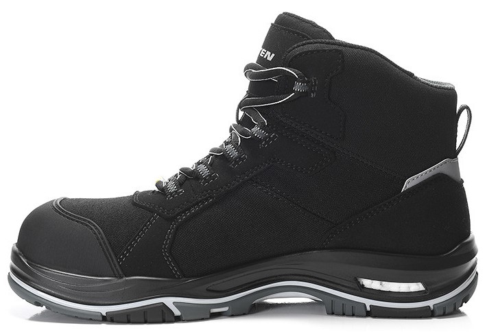 Our IAN XXTP Pro grey Mid ESD S3S absorbs the forces acting during walking and returns the energy generated to the musculoskeletal system. This reduces the risk of overloading muscles and joints. Responsible for this is the Infinergy® cushioning material from BASF, which has been processed in the core of the TPU/PU outsole. In addition, the newly designed WELLMAXX TRAINERS POWER sole made of TPU/PU enables excellent slip resistance and thus ensures more surefootedness. If you just slip in and start running, you will be thrilled with the running feeling. Support and safety are enhanced by the hydrophobized microfiber and hydrophobized textile upper that extends to above the ankle. Thanks to the breathability of the textile lining, a bad foot climate is a thing of the past. If you step on shards or nails with your foot, the metal-free penetration protection keeps them from getting in. The protective toe cap made of plastic and the overcap made of thermoplastic polyurethane also increase