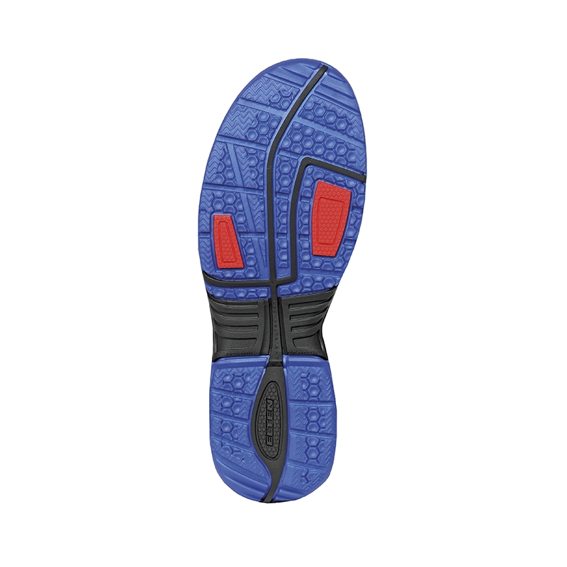 The AMBITION blue Low ESD S1 is a S1 safety shoe from the ELTENDIMENSION PRO series and available in sizes 36 to 48. Nubuck leather and mesh material in the shaft are very hard-wearing. Thanks to ESD equipment, this ELTENsafety shoe is suitable for work in ESD-sensitive and electrostatically protected areas. Ergonomically shaped steel caps protect the wearer's toes. A special feature is the DIMENSION Pro outsole with slip-resistant "honeycomb design" and special contact surfaces for almost frictionless turning on the spot - especially for hard, smooth floor coverings in industrial halls. A semi-orthopaedic insole and breathable textile lining, but also fashionable design ensure that this comfortable S1 safety shoe is worn with pleasure. On Top: The AMBITION blue Low ESD S1 is certified for orthopedic changes