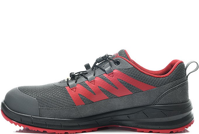 The safety low shoe Marten XXSports grey-red Low ESD S1P offers besides its sporty design also an excellent equipment. The grey shoe with red accents is made of microfibre and mesh material. The lightweight upper material and the breathable textile lining ensure good air circulation and thus a pleasant shoe climate. Furthermore, the S1P protection class shoe is equipped with a steel toe cap, metal-free penetration protection, ESD capability and a WELLMAX SPORTS sole made of TPU/PU. In terms of comfort, the shoe excels with its Infinergy® sole core from BASF and the lacing system with individual quick lock.