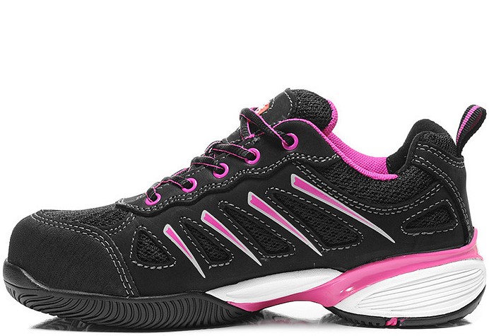 The jo_FIT LADY Low S1P is a safety shoe by Jori especially for women. Its sporty design pleases with a black-pink color scheme with white accents, and also the size range, which starts at 36 and ends at 42, corresponds to the common women's sizes. A heel loop makes it easy to get into the shoe. The upper is made of a combination of nubuck leather and mesh material, making the upper durable and breathable. Breathable textile lining serves as the inner lining. This safety shoe is a strong protector: it has a steel toe cap as well as metal-free penetration protection. The oil-, fuel- and heat-resistant sole, in pink-black to match the shoe design, has a slip-resistant effect and provides the wearer with a good grip on a wide variety of surfaces. Thanks to certification in accordance with DGUV regulation 112-191, this women's safety shoe is approved for orthopaedic insoles.