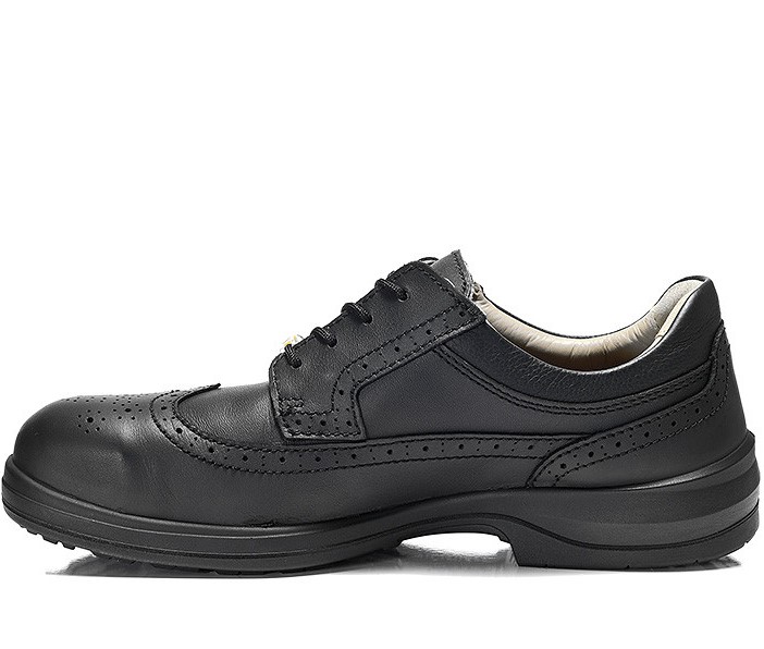 As an elegant black business safety shoe with leather upholstery, the OFFICER XXB ESD S2 is the ideal all-rounder for the most diverse requirements. Especially noble: the contrasting light-coloured leather lining. The SRC certified Mono-PU outsole can be used in a variety of ways and ensures a stable appearance with its slanted T-profile ribs. Extra comfort is provided by the sole core made of BASF's Infinergy® material - small beads of foam that provide optimum resilience. As a result, the wearer is given back energy with every step and tired joints can look forward to relief. The ESD-compatible safety shoe also has a steel toe cap and is available in sizes 39 to 49.
