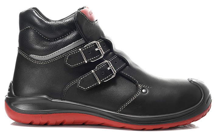 Here comes the Craftwerk for your feet: the ANDERSON Mid S3 HI. Roofers will be delighted with the many safety features. Because the mid-top version of the ANDERSON gets an A+ rating with an asterisk for foot protection. Why? The upper is made of cowhide, the lining is made of leather - all very robust and hard-wearing. The two buckles for fastening are particularly practical, allowing the boot to be individually adjusted to the shape of the foot. Padded protective cuff, seams made of heat-resistant Nomex® yarn: perfect for welding or similar work. The forefoot area is also perfectly protected by a steel toe cap. Textile penetration protection is also ideal, preventing protruding nails or sharp metal parts from penetrating from below. The PU toe protection molded onto the front also protects the upper material from premature wear. The outsole made of RUBBER and PU also does an excellent job, as this makes the sole flexible and temperature-resistant, and the good tread pattern ensures