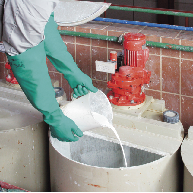 High-quality nitrile provides excellent protection against a variety of chemicals. Due to the extreme length, wide areas of the arm are protected. Long cuff, roughened, unvelourised.