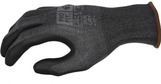| characteristics (hand protect): | knitted cuff, partial coating, rolled edge |