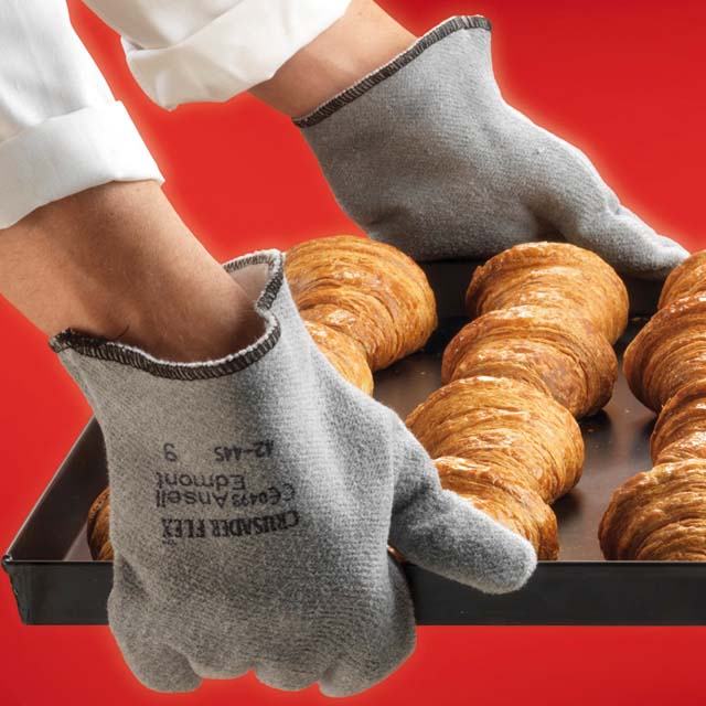 Suitable for short handling of hot objects up to 180° C. Effective protection against cuts, abrasions and other minor injuries. Increased grip safety on dry and oily surfaces. Comfort and flexibility: Sweat absorbent non-woven lining.