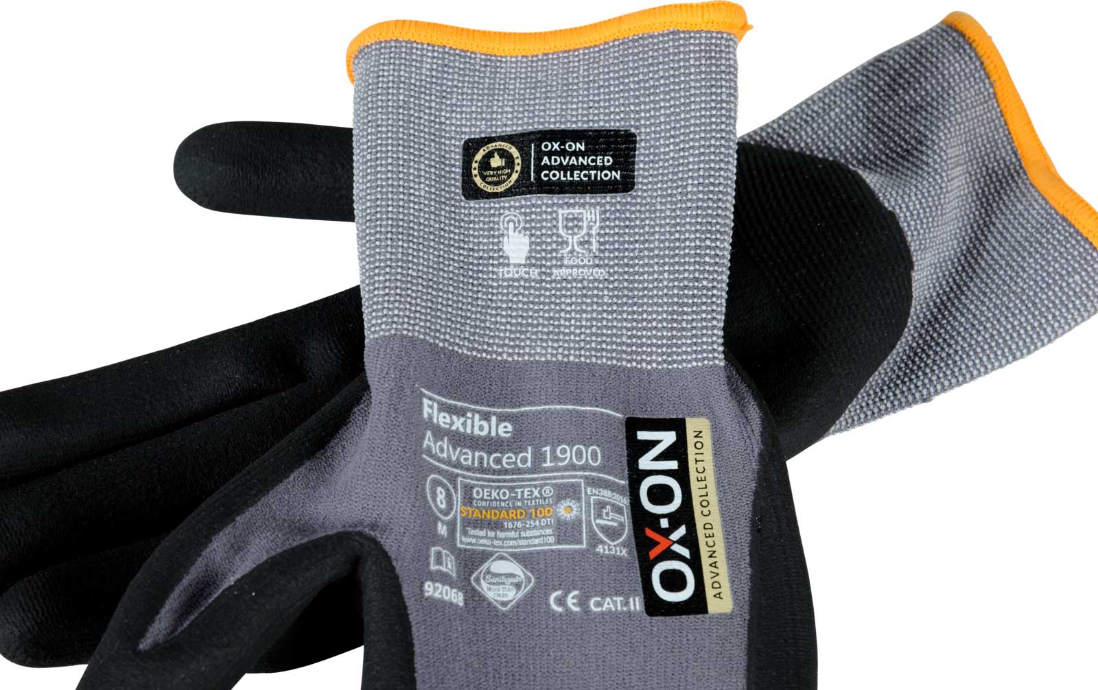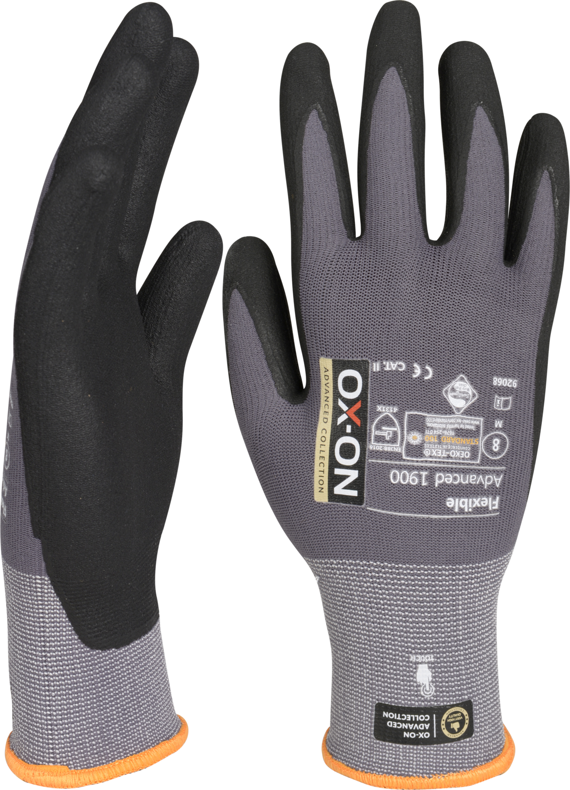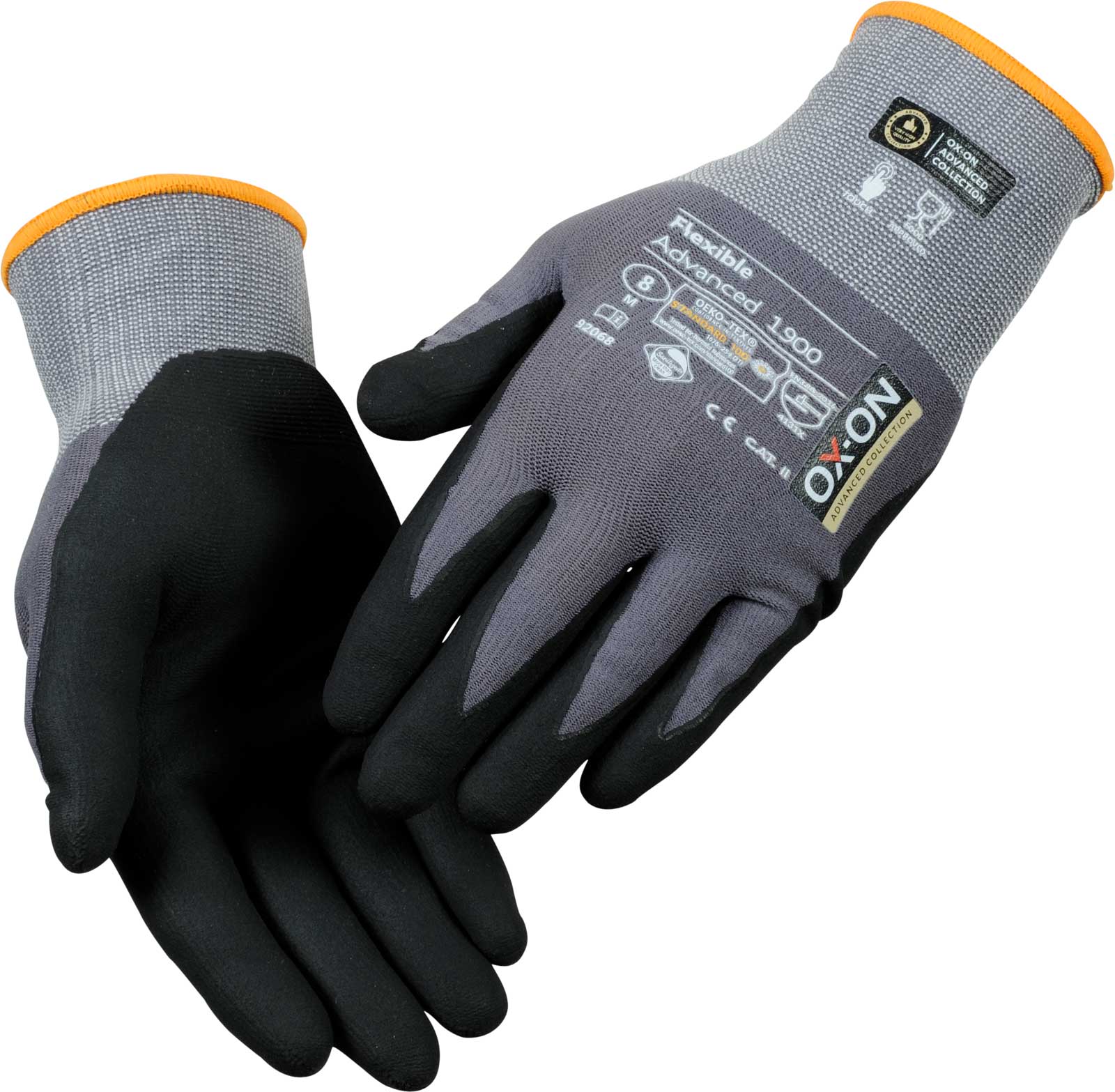 OX-ON Flexible Advanced 1900 is the highest quality all-rounder in its class. Thanks to its touch functionality, you can operate your phone, tablet and other displays without taking off your gloves. The glove is extremely durable and fits as if it was made for your hand. The fit is outstanding and promises continuous comfort - regardless of your activity. The fabric of the OX-ON Flexible Advanced 1900 consists of nylon and elastane. It offers you unique breathability with unsurpassed flexibility and comfort. The palm and fingers are coated with a special nitrile foam that provides excellent tactile sensitivity and a precise, secure grip. The Advanced 1900 glove is OekoTex certified. This is your guarantee that the glove does not contain any chemicals or dyes that are hazardous to health or the environment. In addition, the glove is Sanitized, which means it feels fresh for longer and protects you from germs and sweat odors. A special glove in a class of its own!