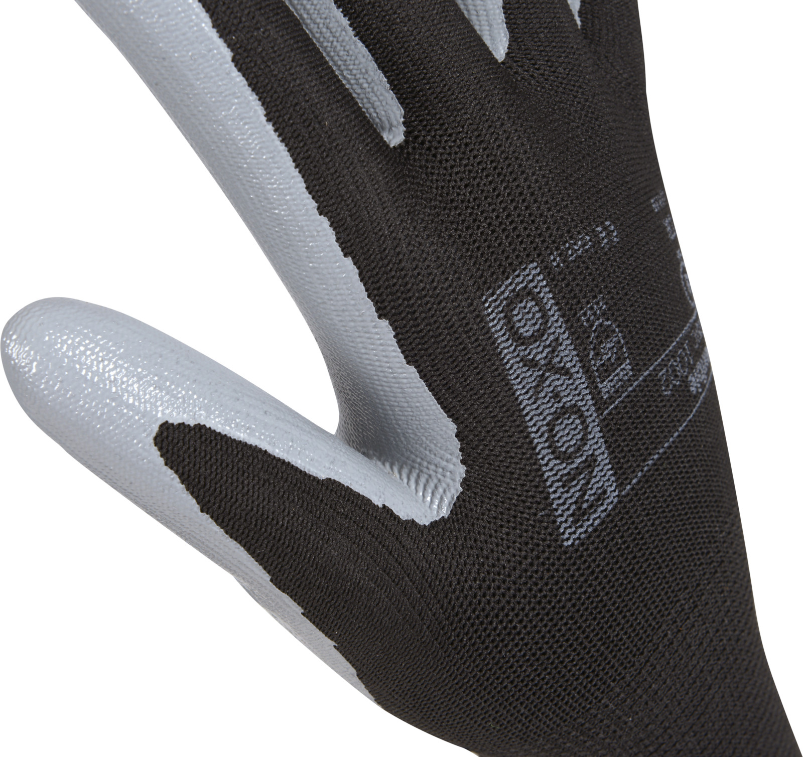 The OX-ONBull is a fine knitted glove with smooth grey nitrile coating, the back of the hand is free.