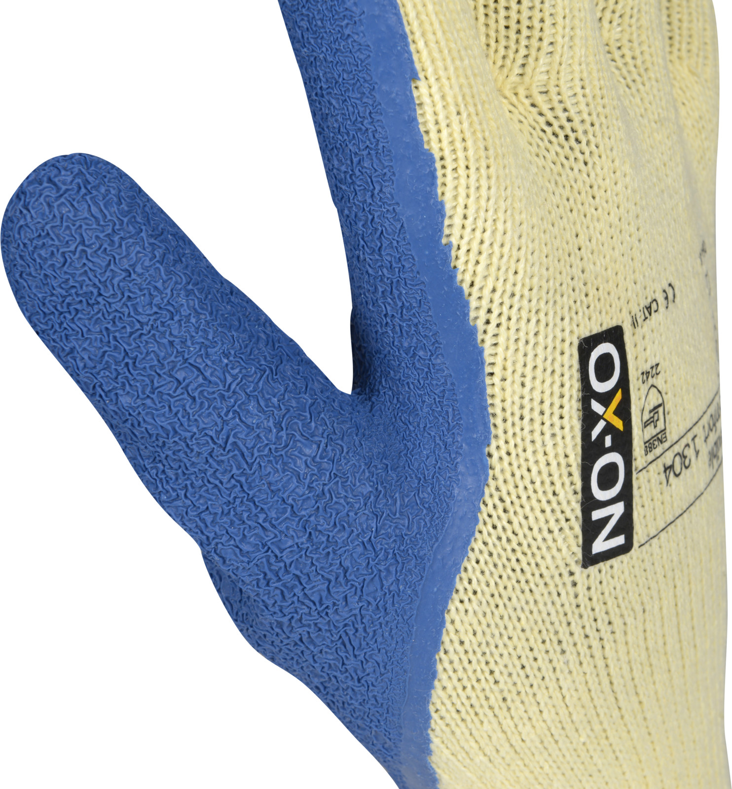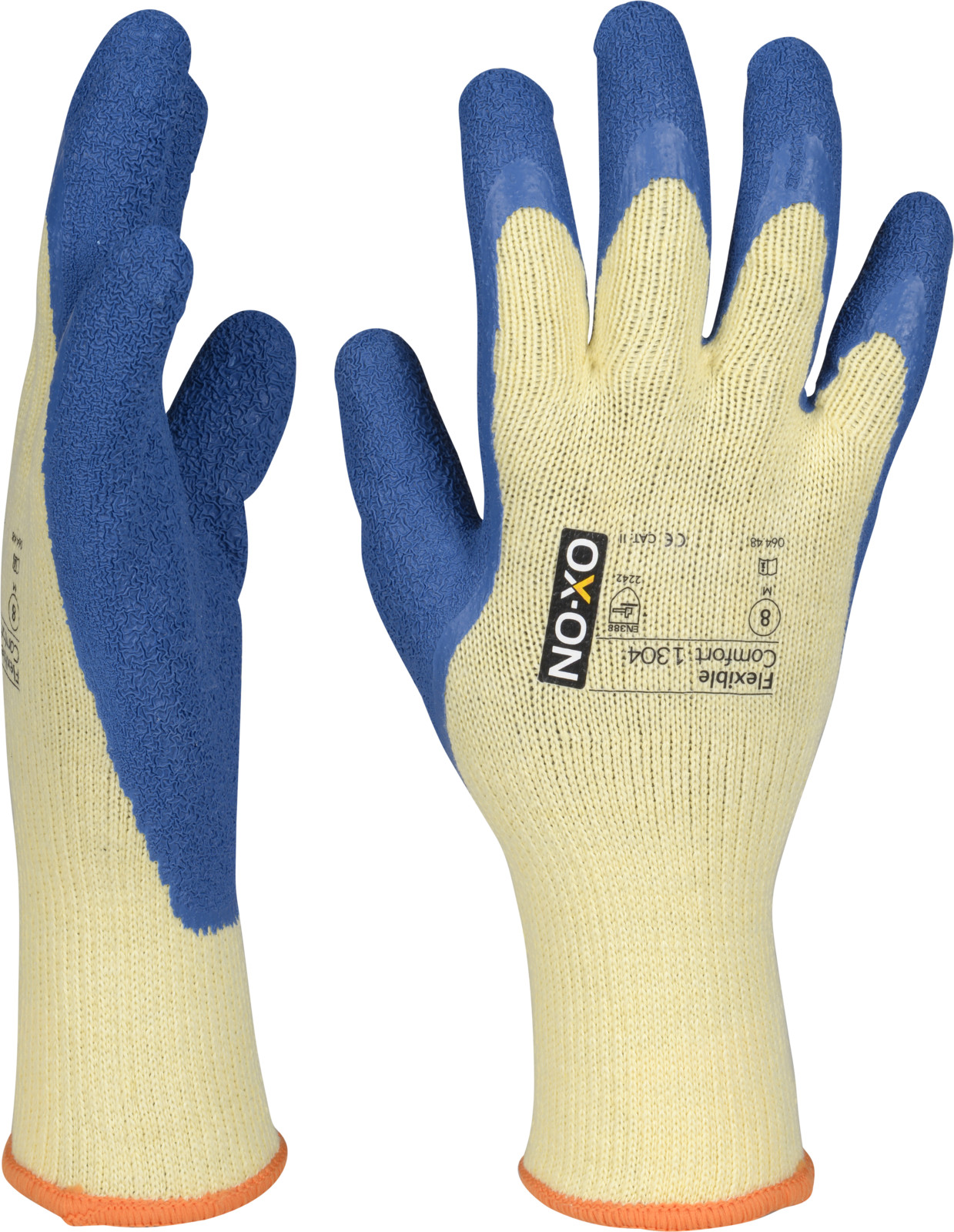 The OX-ON Flexible Comfort 1304 is the robust work glove for all those who need a firm grip and protection of their hands in plant, construction, agriculture and forestry work. With the Flexible Comfort 1304 you get a finger-dipped knitted glove that guarantees full comfort and mobility - even for more demanding work tasks. The knitted fabric is made of polyester and cotton, which gives you a comfortable fit, high durability and a solid quality. The palm of the hand is coated with latex in a pattern to ensure an unsurpassed secure grip. The Flexible Comfort 1304 also has a latex coating on the entire thumb, which makes the Flexible Comfort 1304 a durable glove that is suitable for intensive use