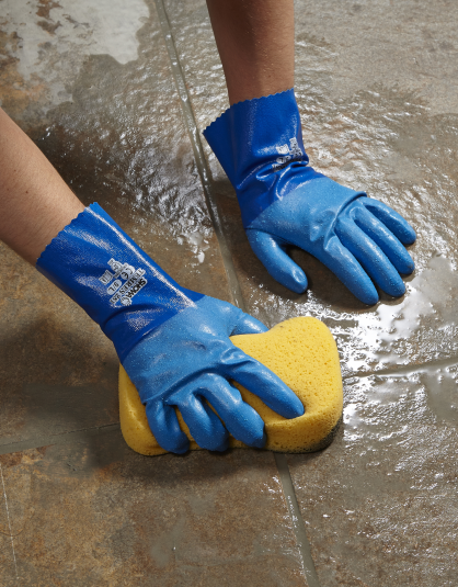 These water repellent gloves with TEMRES® technology keep water outside the glove while allowing warm air and moisture to escape to the outside. Breathability combined with flexibility and dexterity due to the thin coating and seamless support fabric ensure comfort even during extended wear. A micro-roughened nitrile layer on the fingertips of the gloves provides additional grip security for general use or when working with liquids.