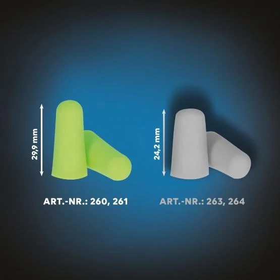 Prosoft 39 earplugs, packed in a polybag, excellent attenuation values: SNR 39 dB(A), H 38 dB(A), M 37 dB(A), L 34 dB(A). Combining softness on the one hand and stability on the other, the plugs provide a high level of comfort. Due to the slow expansion, the plug optimally adapts to the size and shape of the ear canal to its user and seals the ear canal well thanks to the conical shape.