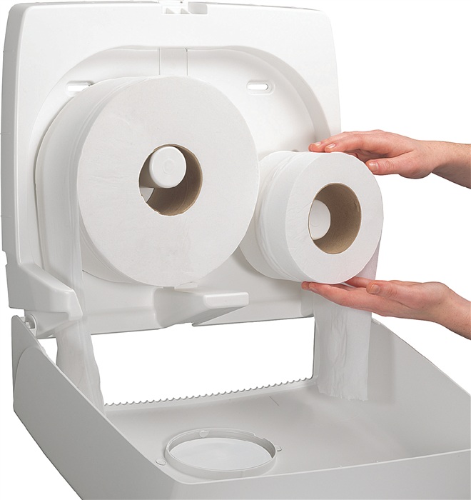 - particularly suitable for heavily frequented washrooms due to high-yield large rolls