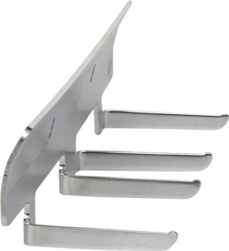 Wall mount for up to 4 products. Made of stainless steel and therefore well suited for food processing plants. The holder is easy to clean and hygienic in use. Well suited for cleaning equipment which must not touch the wall. Designed for open shutters.
