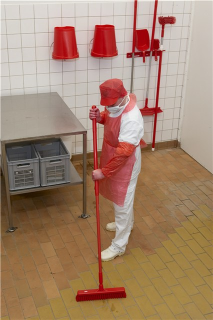 Extremely robust and ergonomic handle. Rounded tip, can be hung up. Well suited for chemical rooms and situations where the tool is exposed to heavy chemical use.