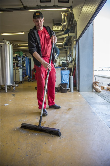 Broom with soft filaments. Well suited for the removal of loose soiling of all kinds. Suitable for color coding to avoid cross contamination. Bristle length 60 mm.
