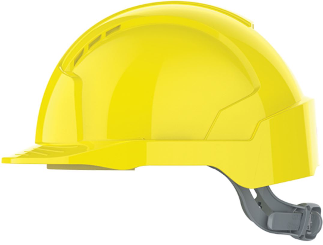 represents a revolutionhbin occupational safety and enables safety professionals to achieve a new level of compliance with safety regulations. The helmet is very light and adapts to a range of head sizes and shapes. The interior and outer shell are connected so that the helmet sits firmly and securely on the head, even when turned upside down. This offers more safety and protection during work in strong winds or activities that require high mobility, such as motorway construction sites. Standards: EN397, EN50365 Shock absorption: 50 Joule Heat test up to +50 °C Cold test down to - 40 °C Textile belt system Electrical insulation: 1000 V Colours: white, yellow, blue PU: 10 piecesLightweight outer shellWith a weight of less than 300g (depending on model), the EVOLite® is the lightest industrial safety helmet available on the market.Maximum comfortThe 6-point Terylene harness system and Chamlon™ Egyptian cotton sweatband with a porous PU surface layer for maximum sweat absorption of