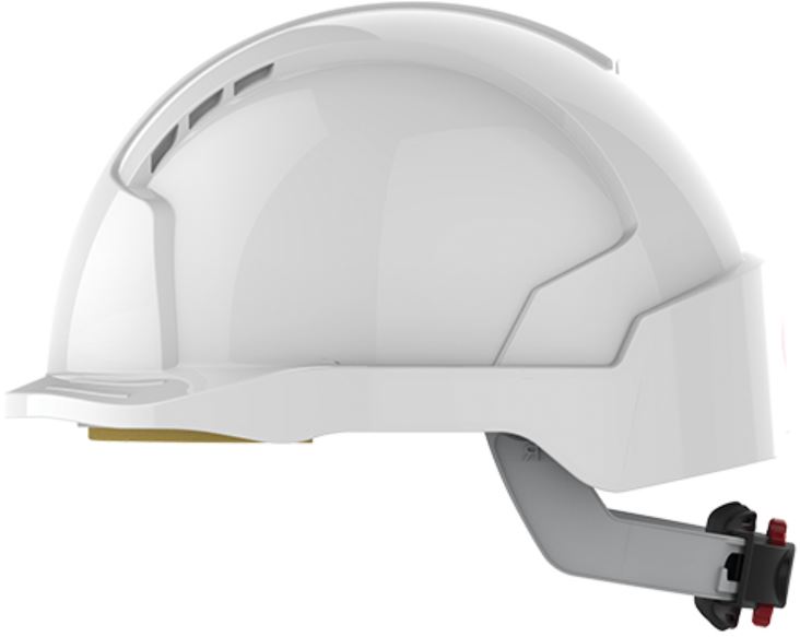 represents a revolutionhbin safety at work and enables safety professionals to achieve a new level of compliance with safety rules. The helmet is very light and adapts to a range of head sizes and shapes. The interior and outer shell are connected so that the helmet sits firmly and securely on the head, even when turned upside down. This offers more safety and protection during work in strong winds or activities that require high mobility, such as motorway construction sites. Standards: EN397, EN50365 Shock absorption: 50 Joule Heat test up to +50 °C Cold test down to - 40 °C Textile belt system Electrical insulation: 1000 V Colours: white, yellow, blue PU: 10 piecesLightweight outer shellWith a weight of less than 300g (depending on model), the EVOLite® is the lightest industrial safety helmet available on the market.Maximum comfortThe 6-point Terylene harness system and Chamlon™ Egyptian cotton sweatband with a porous PU surface layer for maximum sweat absorption offer unparall