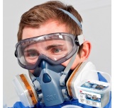 3MPremium Paint Mask Set offers the highest level of breathing protection for any paint job. These very light and soft half 3Mmasks with their trapezoidal filters are characterized by a good weight distribution and combine optimal health protection with highest wearing comfort in two different sizes. The patented Cool Flow™ exhalation valve significantly reduces heat generation duringm Ausbreathing and thus prevents heat build-up inside the mask. Respiratory resistance is also noticeably reduced. In addition to the mask, the air-tight and resealable inflatableewahrubox also contains gas and steam filters, particle filters and cleaning cloths. The filters can be easily replaced thanks to the bayonet click fastener. Nevertheless, they sit securely and reliably guarantee optimum health protectionProperties: Consisting of 1 x mask body M (7500 series), 2xFilter A2, 4xFilter P3, 2xFilter housing cover, 10xcleaning cloth and 1xairtight, resealable topewahrubox Very light and soft silicon