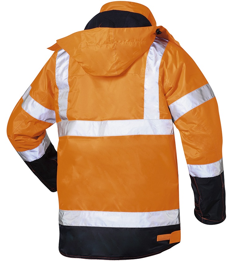 Standard: EN ISO 20471 class 3, (vest separate class 2), EN 343 class 3/1, EN 13688 Upper: 100% polyester oxford, breathable PU coating Breathability: 3,000 g/m۲/24 h Water column: 5.000 mm Lining: 100% polyester Padding: 100% polyester Sizes: S-XXXL Colour: fluorescent orange, navy set off wind and watererdi, highly breathable Welded seams Reflective stripes from 3M™ Scotchlite™ Reflective material robust Oxford fabric: oil- and dirt-repellent, highly abrasion- and tear-resistant detachable hood with fleece lining concealed 2-way YKK® front zipper and press studs/velcro fastener Inner vest also with YKK® front zipper sleeves in ergonomic cut for maximum freedom of movement and comfort warming quilted lining in vest and sleeves adjustable cuffs and hips (also in waistcoat) sleeves with inner cuffs easy emblem application due to zipper in the lining of the vest Bags, jacket: 2 breast pockets with Velcro closure 1 mobile phone and radio bag 1 inside pocket with zip/velcro fastene
