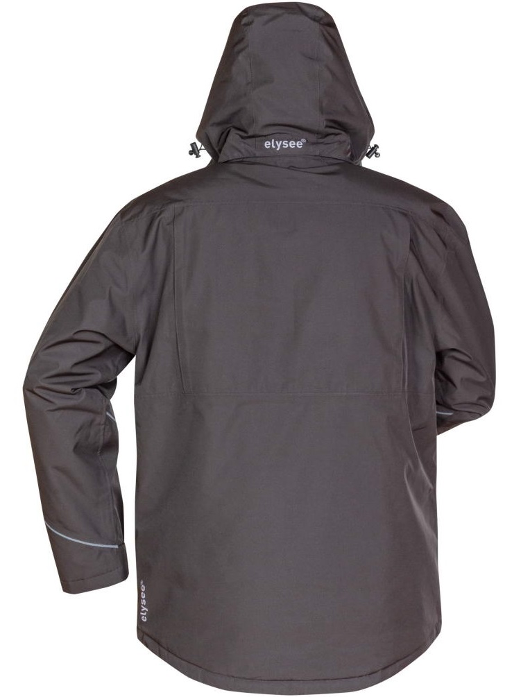 Material: 100% polyester, with highly breathable PU coating Breathability: 3,000 g/m²/24 h Water column: 8.000 mm Lining: 100% polyester Padding: 100% polyester Colour: black Sizes: S - 4XL wind and watererdi, highly breathable especially light and comfortable Welded seams zip-off storm hood in collar, ergonomically shaped, adjustable, with fleece lining concealed robust 2-way front zipper high collar for protection againstWitte reflective inserts for improved visibility and fashionable design warming fleece lining in the upper body area comfortable taffeta lining at hem and sleeves adjustable sleeve waistband with Velcro fastener Movement folds in the back adjustable hem easy emblem application due to zipper in the lining 2 breast pockets with zippers 2 hip pockets with zippers 2 inside pockets with velcro fasteners Packaging unit: 5 pieces
