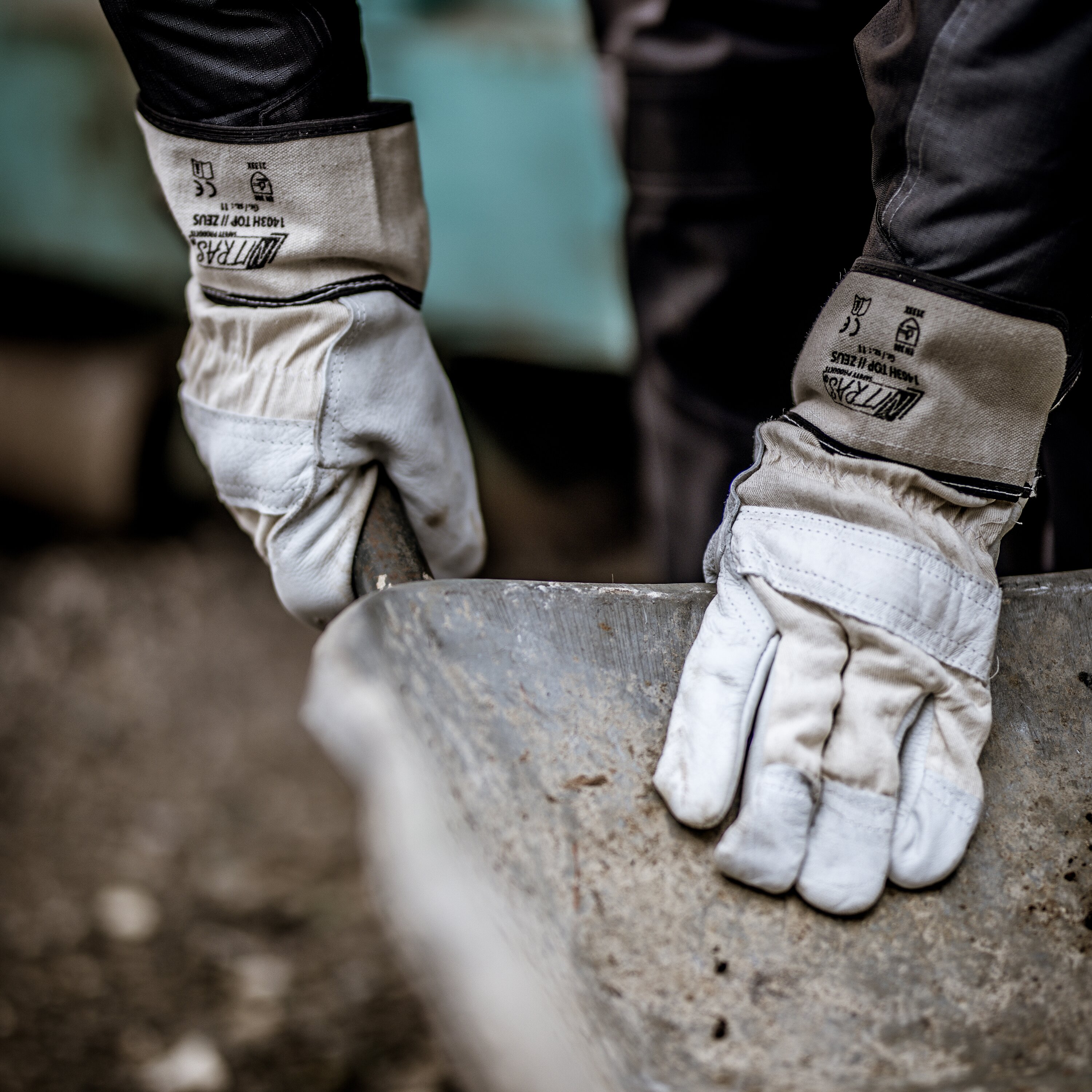 NITRAS ZEUS, full cowhide leather gloves, cotton back, natural color, full cowhide leather, grey, palm lining, canvas cuff, double seams, leather selection A, TOP version